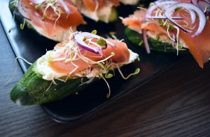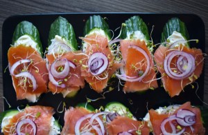 Agurk og røkelaksskiver.